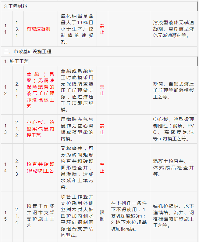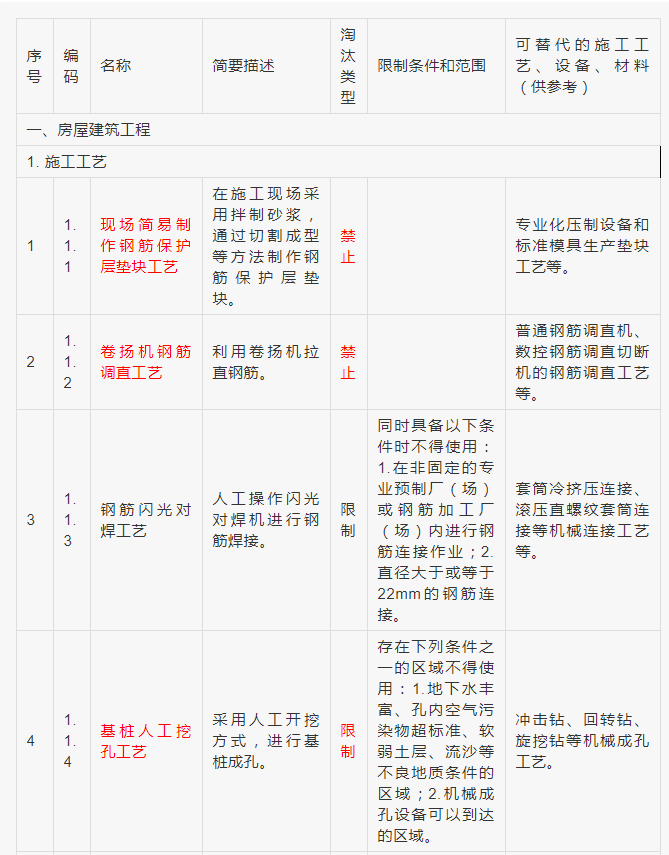 本次擬淘汰目錄里,在房屋建筑工程方面,