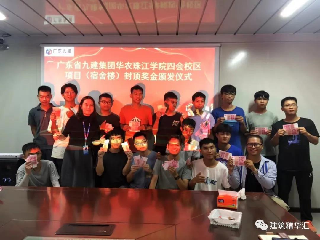 本次封頂同時也是九建項目激勵機制的開篇,懷著階段成功的喜悅,為感謝九建人的辛勤付出,對項目人員進(jìn)行了獎金頒發(fā)儀式。