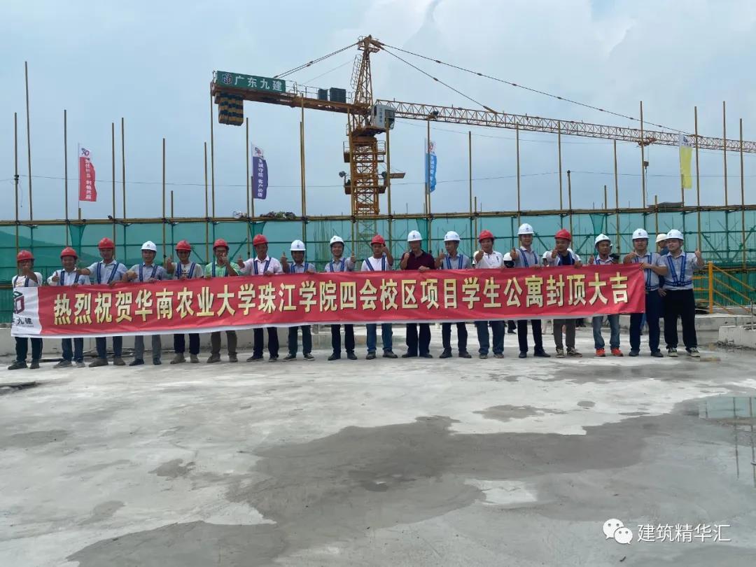 9月15日下午,華農(nóng)珠江學(xué)院四會校區(qū)項目在施工團(tuán)隊歷經(jīng)日夜的精細(xì)打磨下,學(xué)生公寓已高品質(zhì)完成封頂,為此集團(tuán)隆重舉行了學(xué)生公寓封頂慶典儀式,業(yè)主方和集團(tuán)董事長黃大權(quán)、副總黃光明、副總蔡志華、副總梁日家、項目管理部經(jīng)理丁少冬、質(zhì)安經(jīng)理鄧茂東、項目經(jīng)理羅陽旭等出席了此次慶典,共同見證了這一盛況。