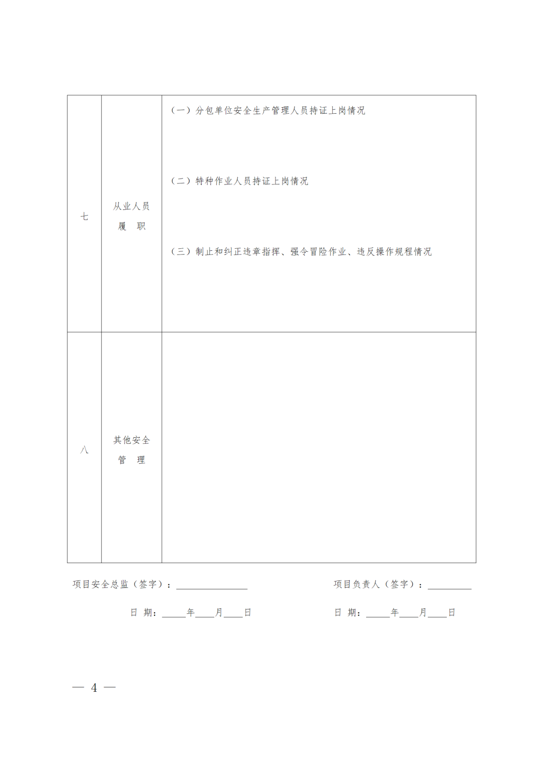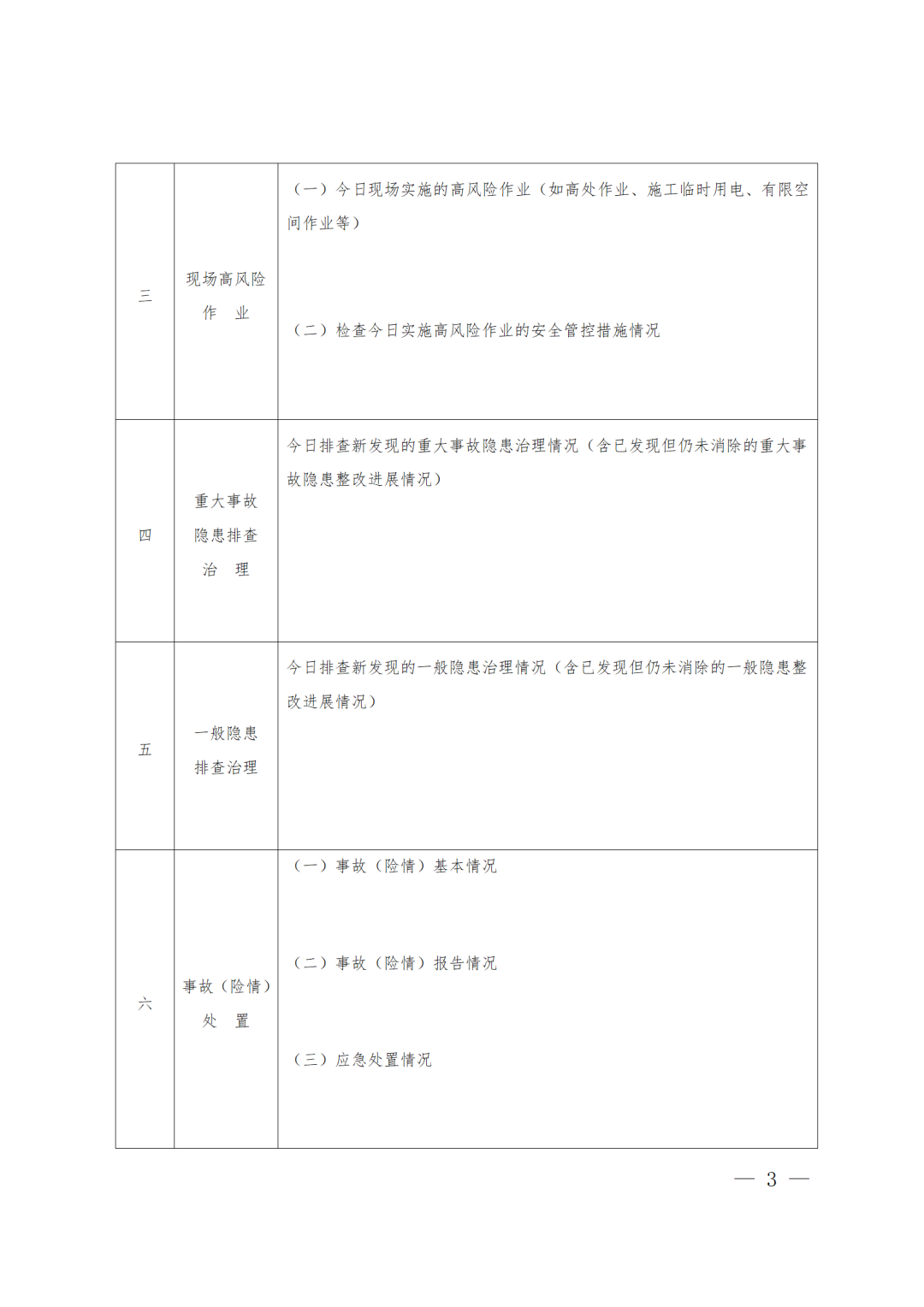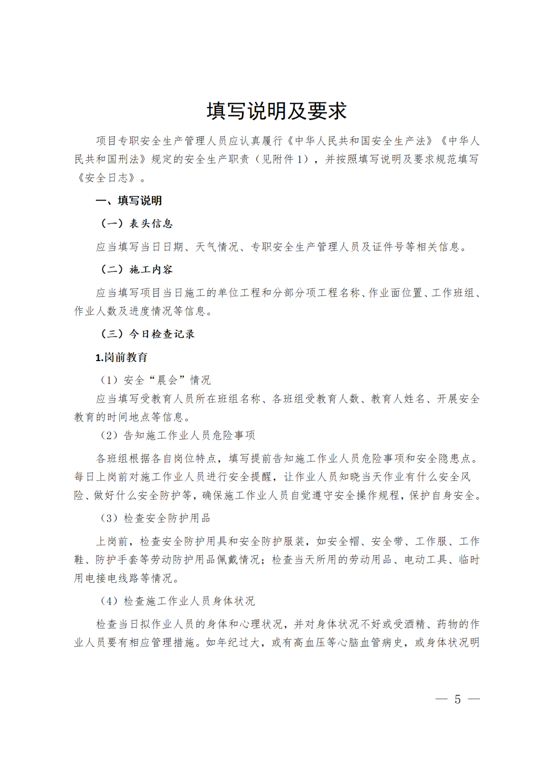 (1)本施工安全日志由施工單位項(xiàng)目安全負(fù)責(zé)人簽字確認(rèn)。