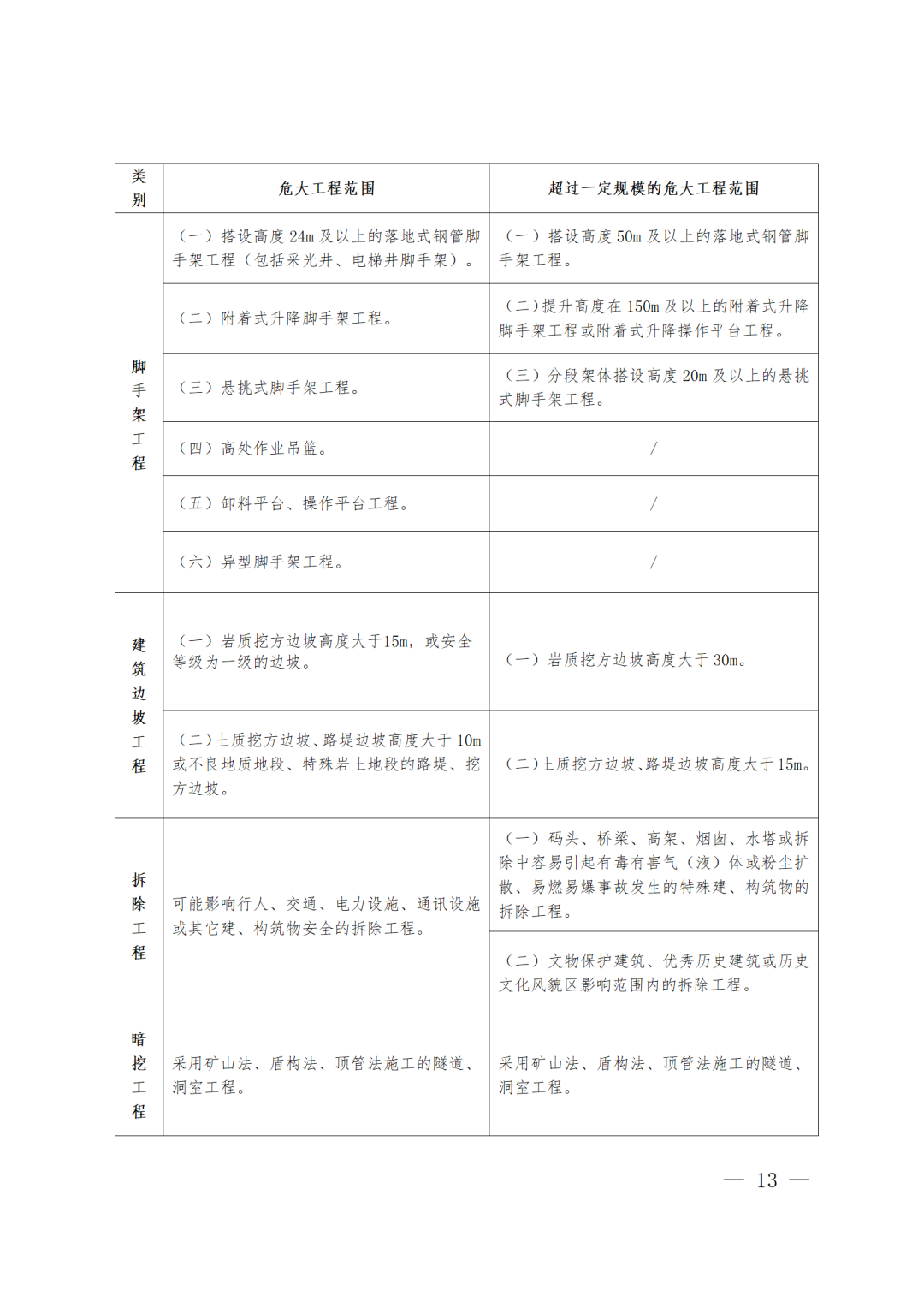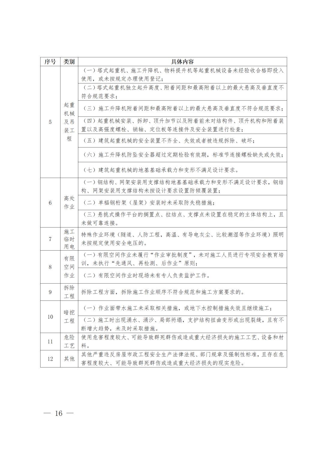 重點(diǎn)檢查深基坑、高大模板、起重吊裝及起重機(jī)械安裝拆卸工程、腳手架工程、隧道工程等危大工程施工及臨時(shí)用電、消防安全情況,有限空間作業(yè)、高處作業(yè)和臨邊洞口安全防護(hù)情況,人員持證上崗情況等。