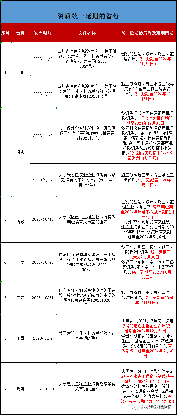 四、匯總:資質(zhì)統(tǒng)一延期的省份